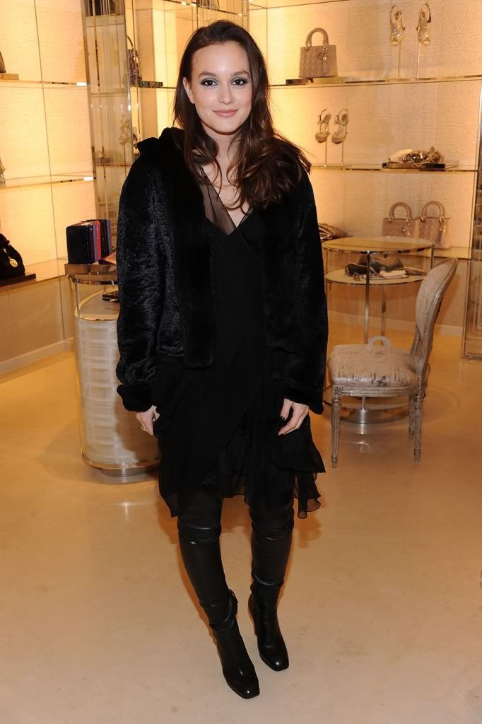 Leighton Meester pojawiła się niedawno na ponownym otwarciu salonu Dior w Nowym Yorku. Nowojorczycy nie od dziś znani są z ubierania się od stóp do głów na czarno, w tym wypadku ta 'etykietka' także odnalazła odniesienie w rzeczywistości. Jako że Leighton nie jest typową łamaczką stereotypów (...a może jednak?) również postanowiła przekroczyć próg salonu jako kobieta w czerni. Na tę okazję aktorka 'Plotkary' wybrała niesamowicie dziewczęcą sukienkę od Dior'a, a jako niezbędny dodatek w postaci butów posłużyły jej kozaki Alaia, przed kolano (wbrew pozorom, bo na zdjęciu nie jest to aż tak widoczne). Panna Meester nie zapomniała również o stosownie ciepłym okryciu na wieczór, tym razem w formie mało sportowej, ale za to bardzo eleganckiej bluzy z kapturem. Swój całkowity wygląd dopracowała za pomocą naturalnego makijażu oraz doskonale znanego już w tych rejonach smoky eyes